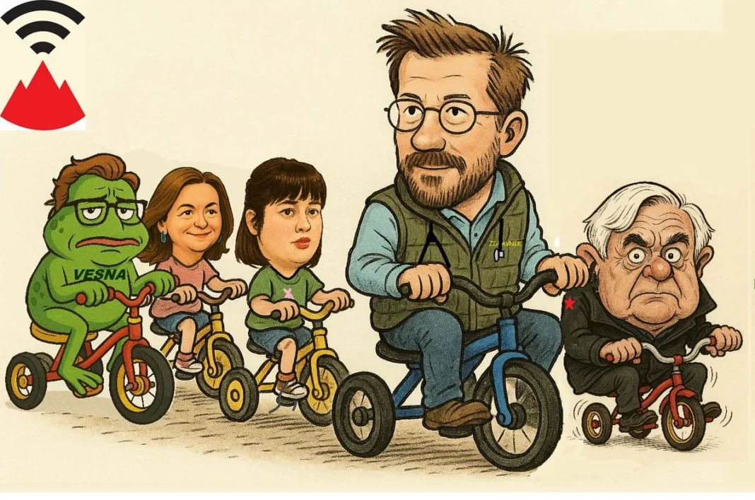 For the far‑left NGOs and guild‑type associations (such as taxi drivers), Robert Golob’s government was a true Eldorado. Their two years of cycling through Ljubljana and chasing phantom fascists were not in vain. The government richly rewarded them with taxpayers’ money. Now the feast is slowly coming to an end, and panic is spreading among the fellow‑travellers of the left‑wing political parties – if they fail (as in 2022) to once again push the Freedom Movement and the two far‑left institutional parties (SD and Levica) through the parliamentary and coalition filter, a harsh winter awaits them. No more free inflow of taxpayers’ money, no more generous public tenders, and no more access to nepotistically obtained jobs in the countless offices of government ministries.