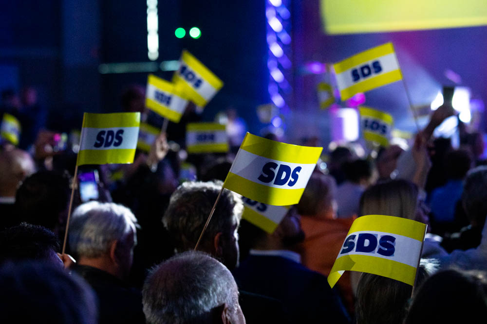 Ladies and gentlemen, once again, we will fight for the voters today, we will fight tomorrow. We will fight until the last counted and verified ballot, so let’s not forget the controls. There are many of us in the Slovenian Democratic Party, there will be even more of us tomorrow. We will never give up, we will never stop, because ours is a fight for the thing, for Pučnik’s thing, for the homeland, for Slovenia, which is not a stepmother to anyone, but has a flag in colours in which we can all recognise ourselves. This struggle does not end with one generation, this struggle goes from generation to generation, this struggle is as lasting as Slovenia is. We are not defending the past, but we are building the future, so we will win, we will win for Slovenia. I ask you who we will win for. For whom. For Slovenia. For whom. For Slovenia, which is my homeland, God bless Slovenia.