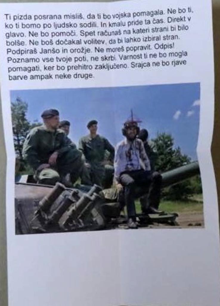 As can be seen from the photo material we obtained, the bullet and the text were sent in envelopes to the home addresses of both Janša and Tonin. Interestingly, they have gone to a bit more trouble with the length of the text for Tonin, promising him liquidation. In the case of Prime Minister Janša, a photo of his family has been added.
